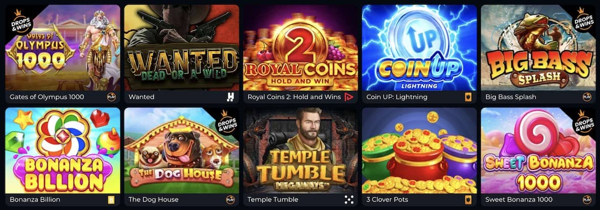 Külön csoportba gyűjtötték a Bonus Buy címeket (ezekből több mint 800-at kínál a kaszinó). Ezekben a játékokban könnyen megvásárolhatod a bónuszokat, nem kell őket manuálisan aktiválnod a scatter szimbólumokkal.